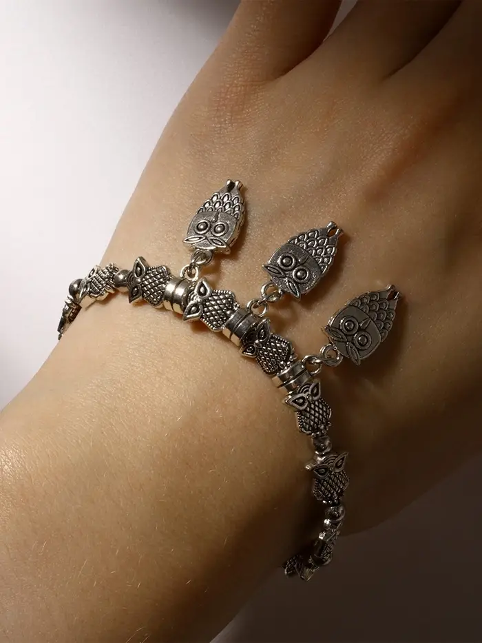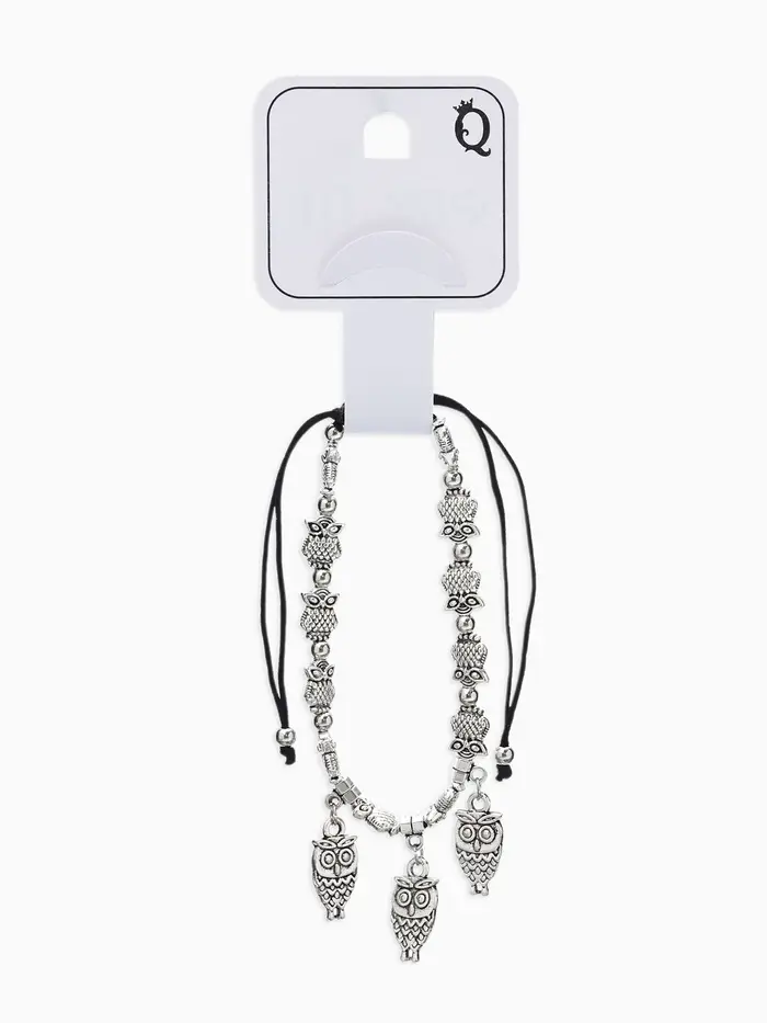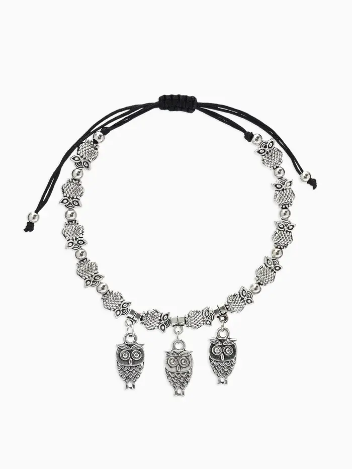 Особенность конструкции — регулируемая затяжка, которая позволяет легко подогнать браслет под индивидуальный размер, не ограничивая движения и не вызывая дискомфорта. Металлическая вставка в виде совы не только украшает изделие, но и символизирует мудрость и защиту, что делает браслет не просто украшением, а талисманом.