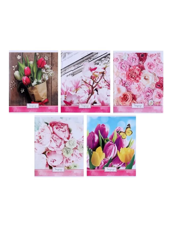Тетрадь 48 листов в клетку, Calligrata «Яркие цветы», МИКС