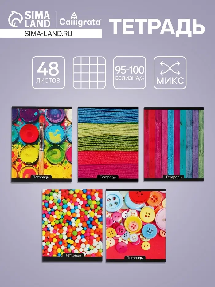 Тетрадь 48 листов в клетку Calligrata «Яркие цвета», МИКС