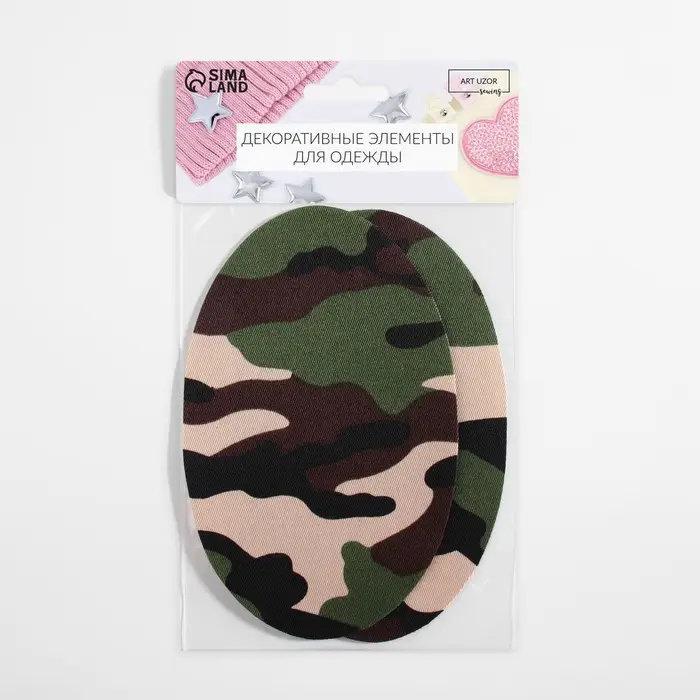 Заплатки для одежды, 15.5×9.5 см, термоклеевые, пара, цвет камуфляж