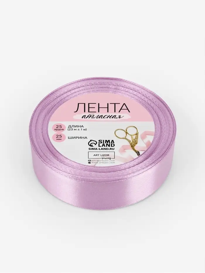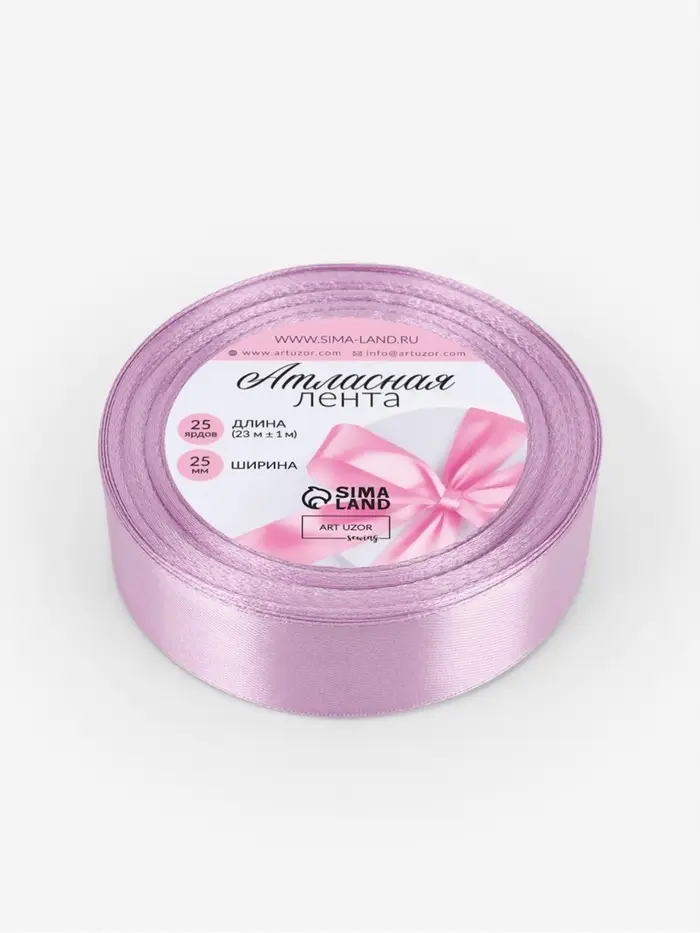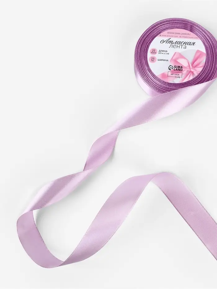 Лента атласная, 25 мм, 23±1 м, сиреневая №141