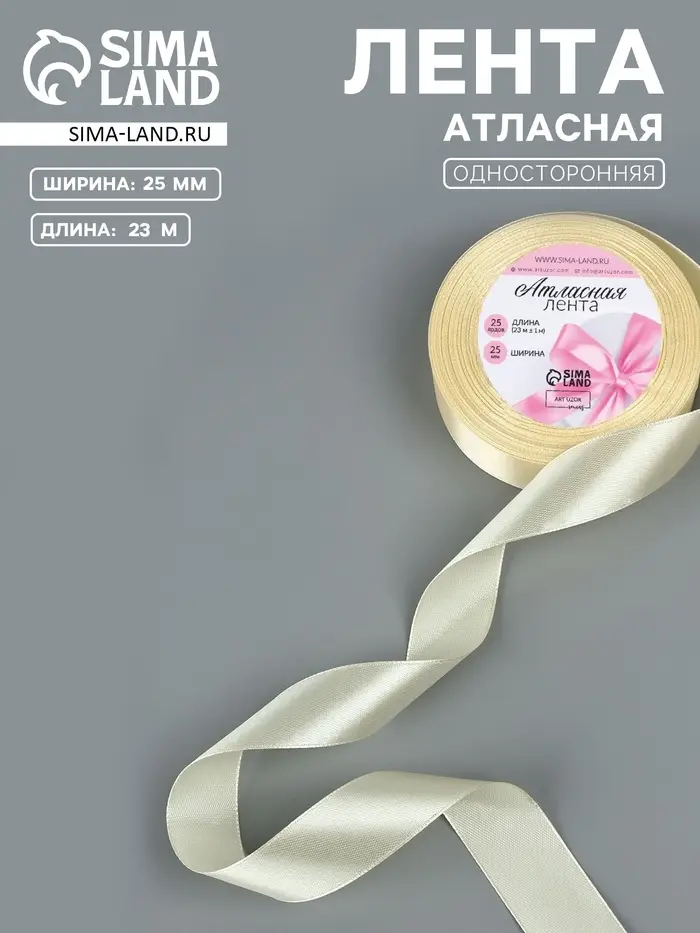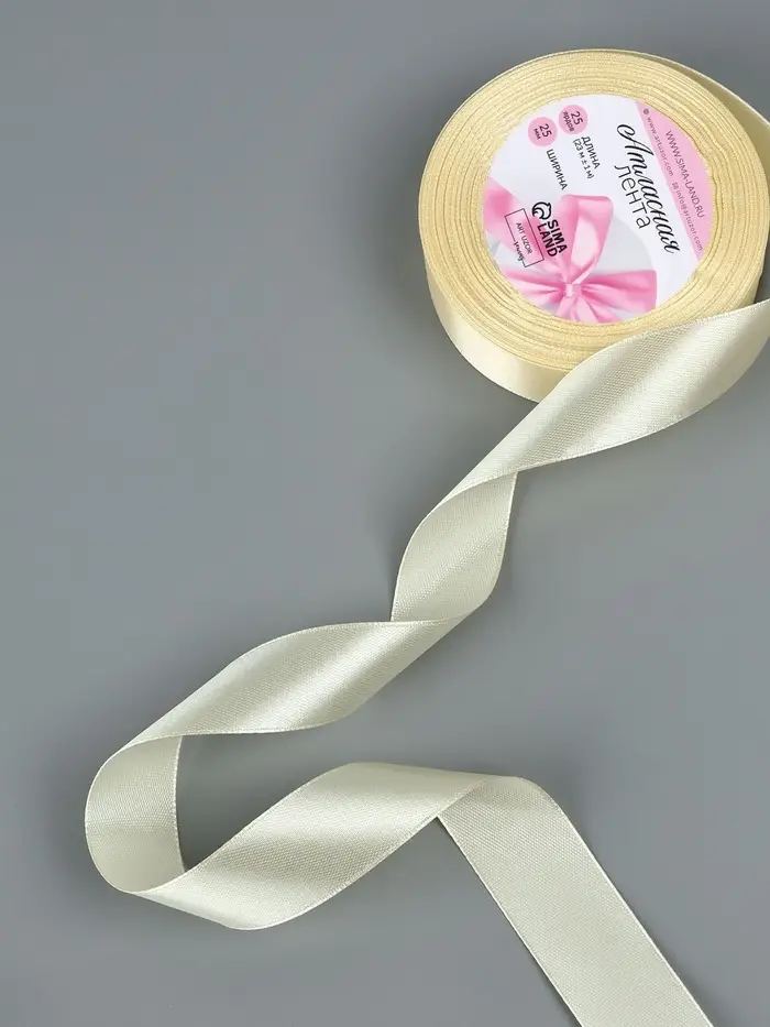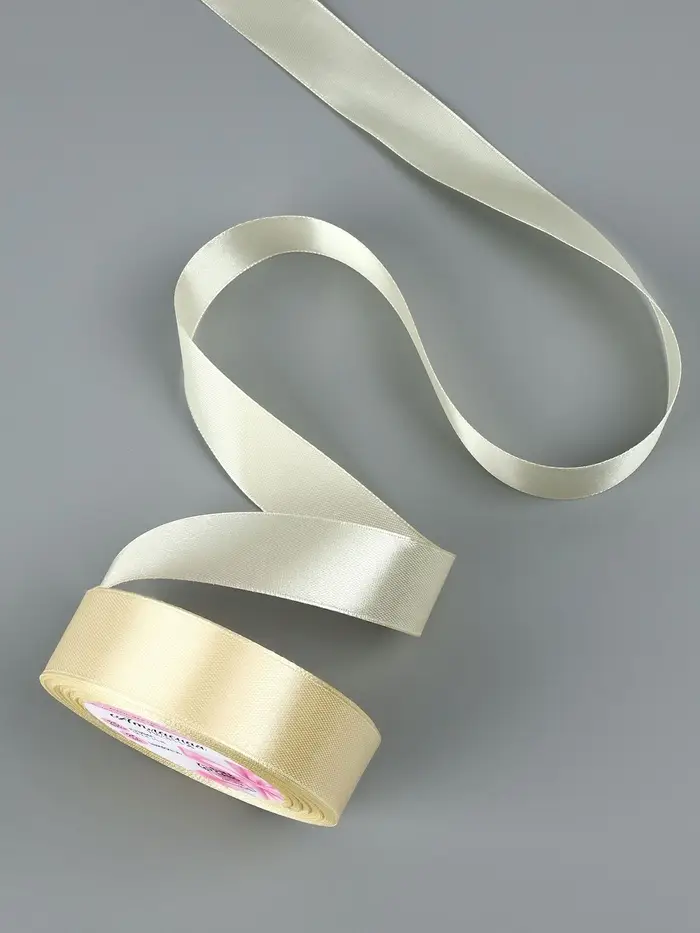 Ищете идеальное декоративное дополнение для ваших проектов? Светло-бежевая атласная лента шириной 25 мм и длиной 23 метра обязательно придаст изысканный акцент любому вашему творению. Сделанная из прочного полиэстера, она объединяет в себе блеск и прочность — безупречный выбор для разнообразных декоративных задумок.