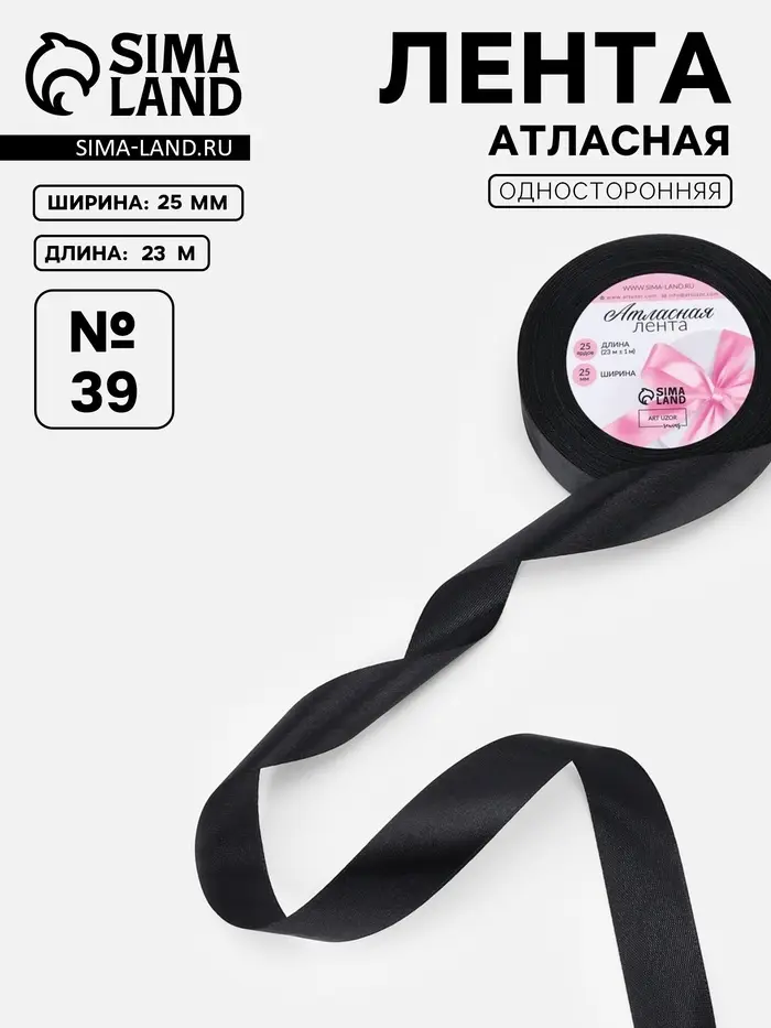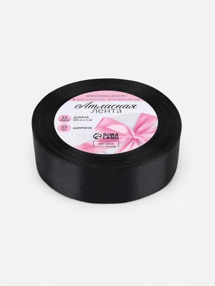 Лента атласная, 25 мм, 23±1 м, чёрная №39