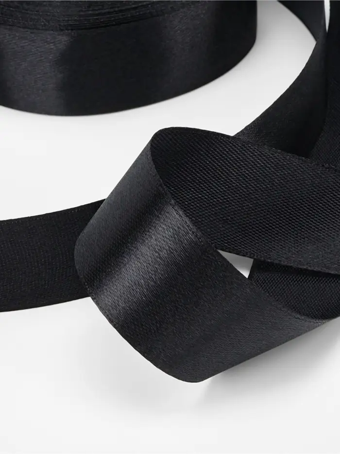 - Лента выполнена из полиэстера и атласа, обеспечивая устойчивость к растяжению и блестящий внешний вид.