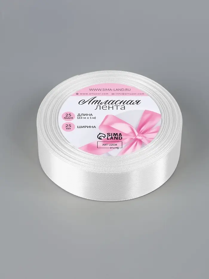 Лента атласная, 25 мм × 23 ±1 м, белая №01