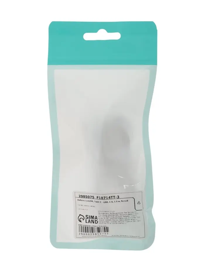 Кабель Luazon, Type-C - USB, 1 А, 1 м, белый