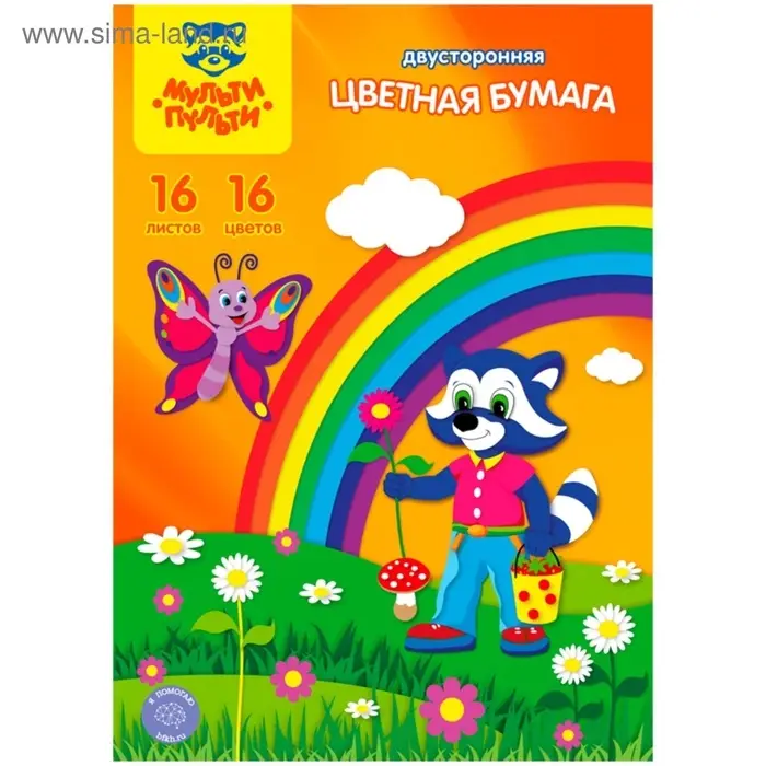 Бумага цветная двухсторонняя A4, 16 листов, 16 цветов Мульти-Пульти, в папке, плотность 65 г/м²