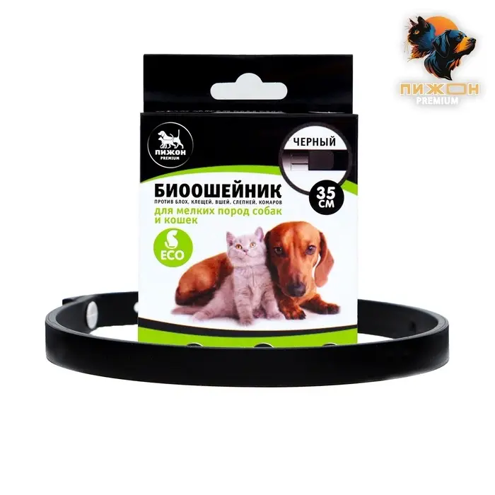 Биоошейник антипаразитарный для кошек и собак «Пижон Premium», 35 см, чёрный