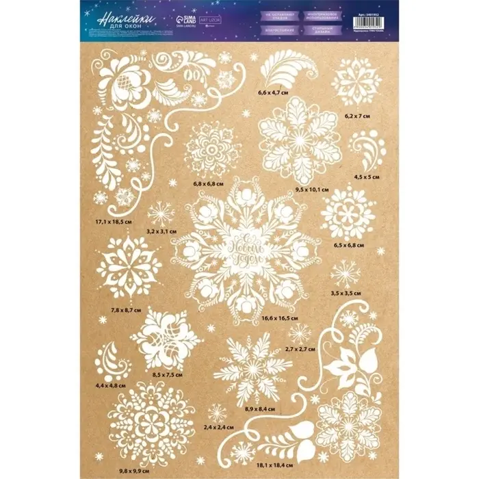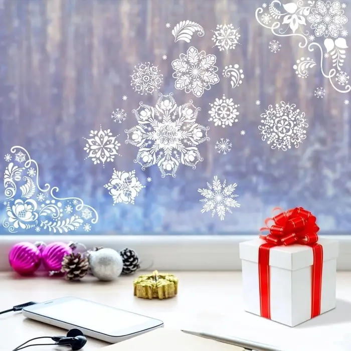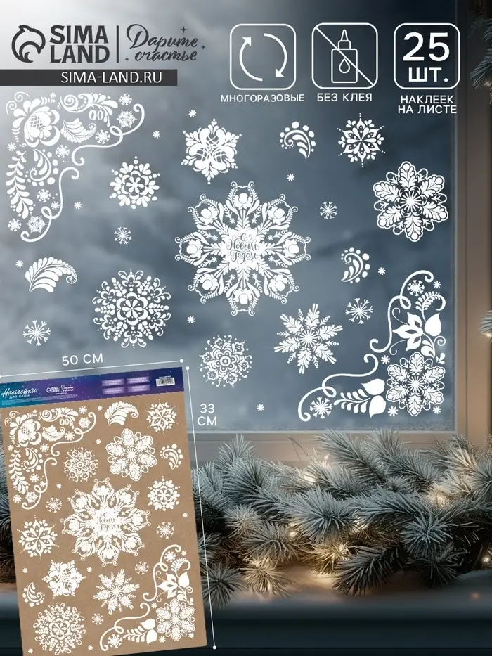 Наклейки на окна многоразовые «Новогодние снежинки», 33×50 см