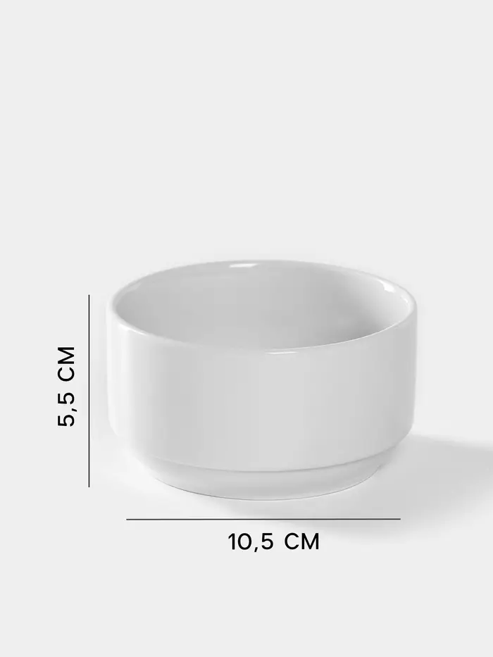Фарфоровая бульонница объёмом 300 мл. Белая посуда с гладкой поверхностью, диаметром 10,5 см и высотой 5,5 см подходит для подачи горячих бульонов, супов-пюре или соусов. Компактный размер обеспечивает удобство сервировки. Однотонный дизайн без рисунка делает её универсальной для ежедневного использования. Изделие предназначено для разогрева в микроволновой печи и мытья в посудомоечной машине.