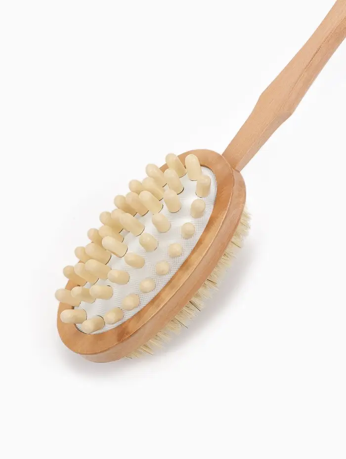 - Эффективный массаж: Натуральная щетина глубоко проникает в кожу, обеспечивая интенсивный массаж, который стимулирует кровообращение и лимфодренаж, способствуя расщеплению жировых отложений.