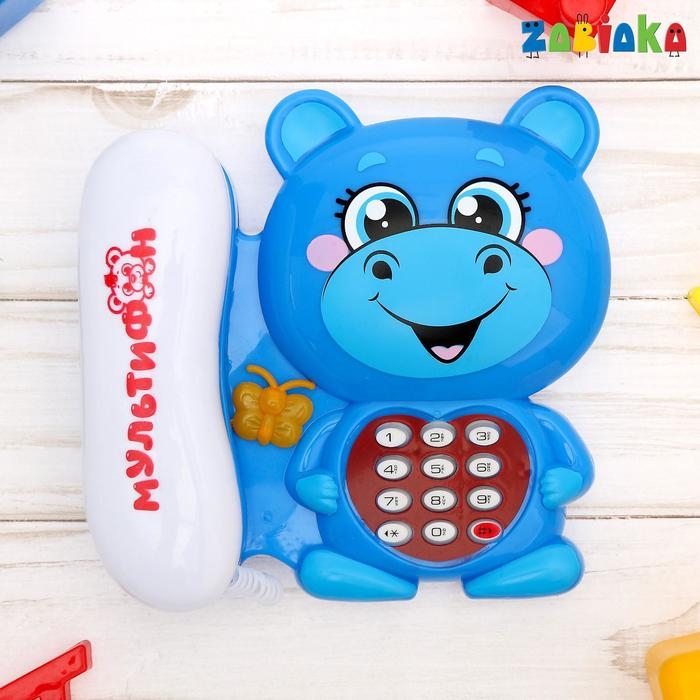 Музыкальный телефон «Мультифон: Бегемотик», русская озвучка, работает от батареек, цвет голубой