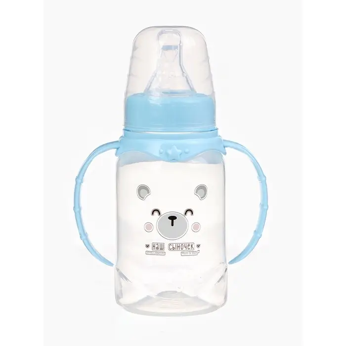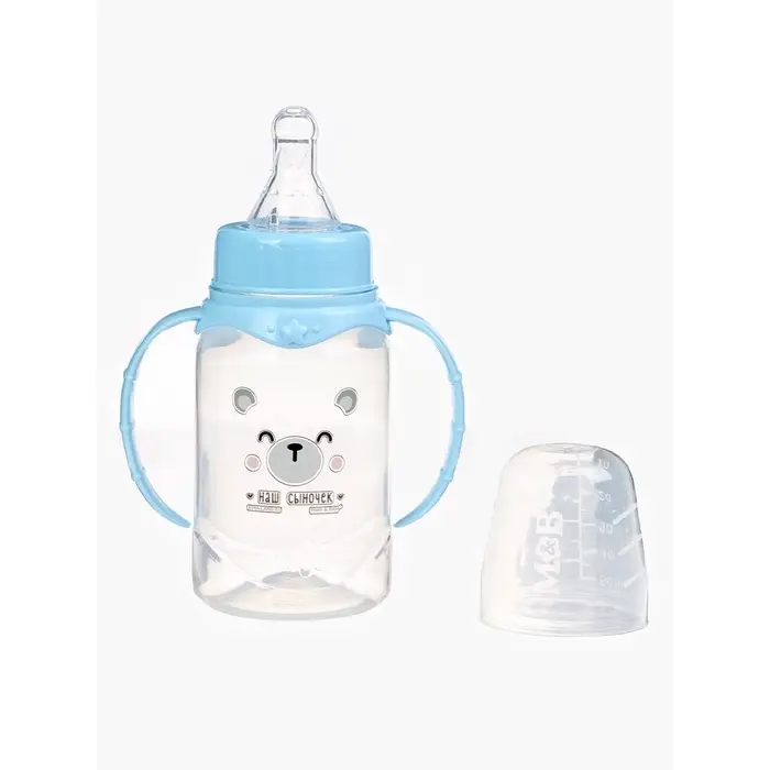 Бутылочка для кормления M&B «Любимый сыночек», классическое горло, прямая, с ручками, 150 мл., от 0 мес., голубой