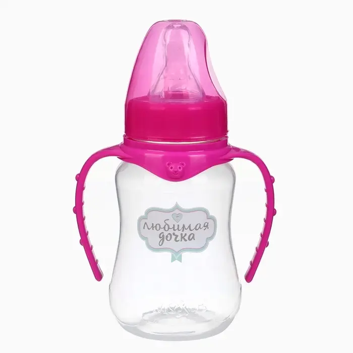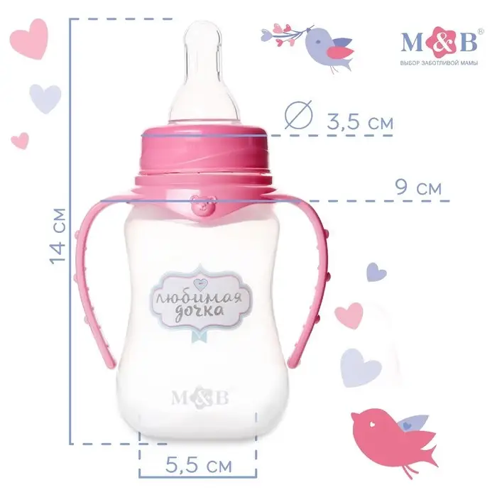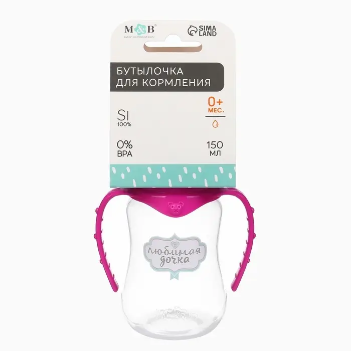Бутылочка для кормления M&B «Любимая доченька», классическое горло, с ручками, от 0 мес., 150 мл., приталенная, розовый