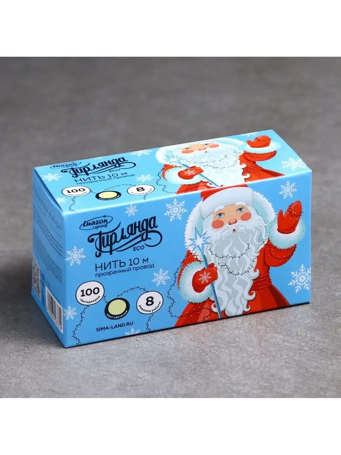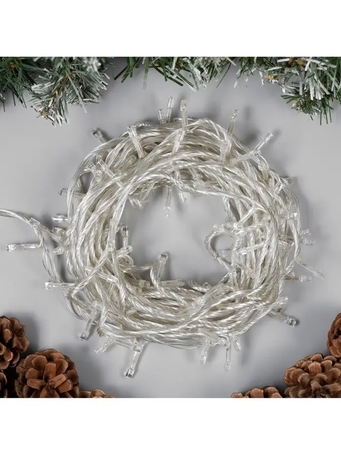 Гирлянда «Нить» 10 м, IP20, прозрачная нить, 100 LED, 8 режимов, 220 В, свечение тёплое белое