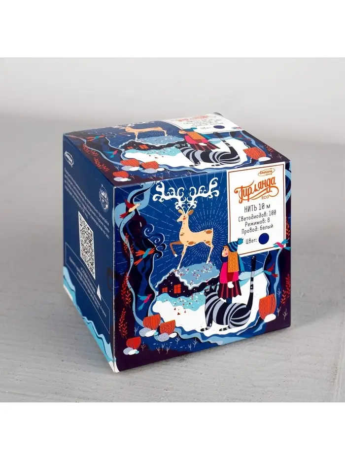 Гирлянда «Нить» 10 м, IP20, белая нить, 100 LED, 8 режимов, 220 В, свечение синее