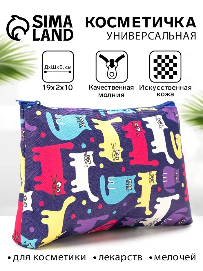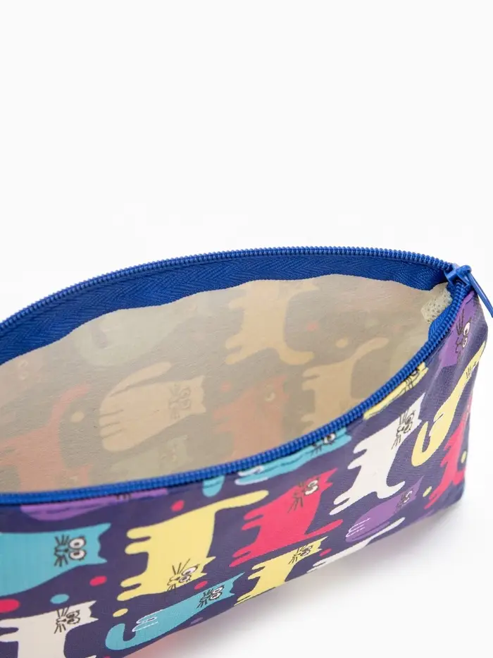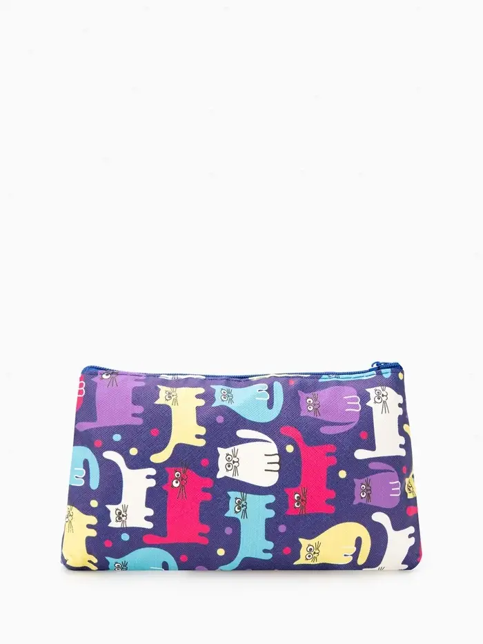 Косметичка - пенал «Котики», на молнии, плоская, с рисунком, разноцветная