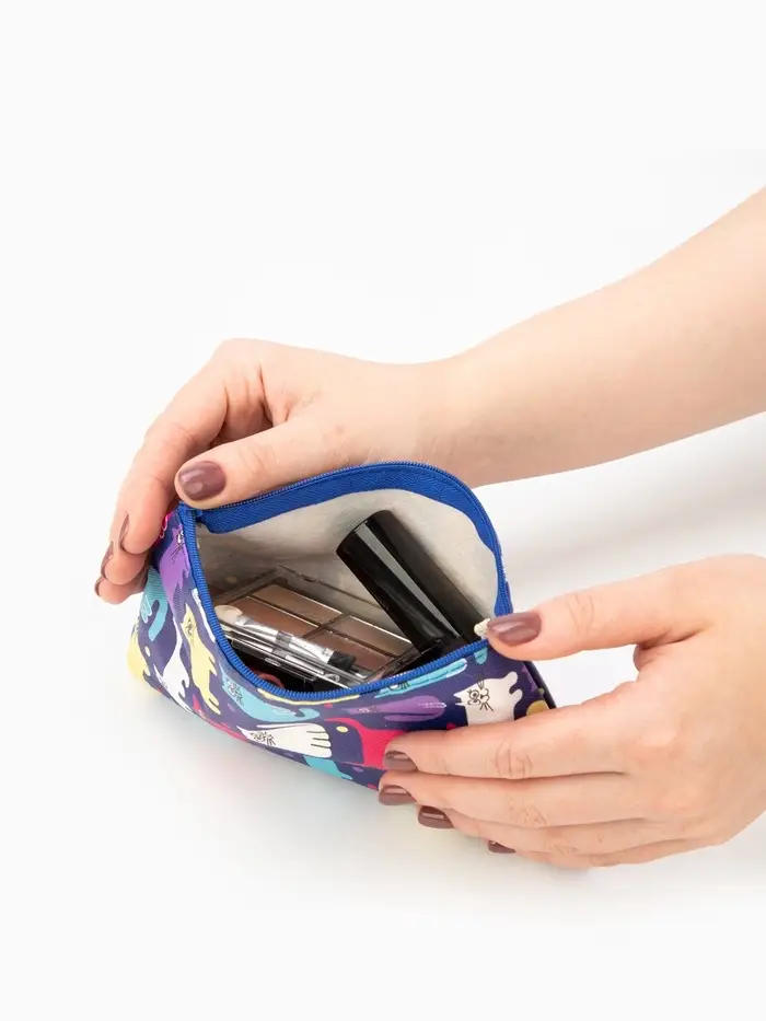 Косметичка - пенал на молнии, плоская, с ярким принтом, разноцветная