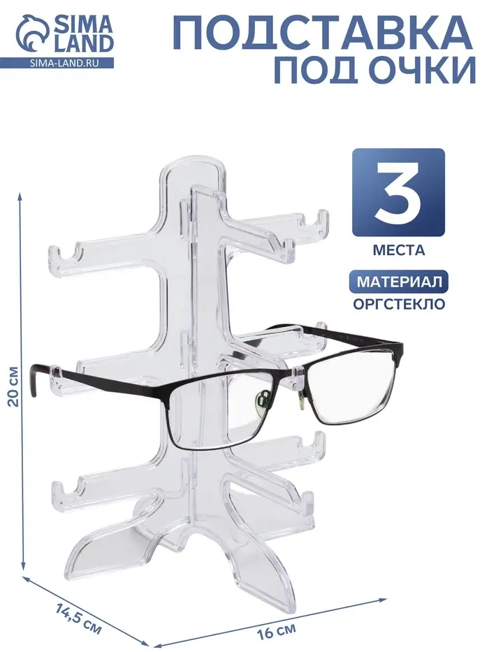 Подставка под очки, 3 места, 16×14,5×20 см, цвет прозрачный