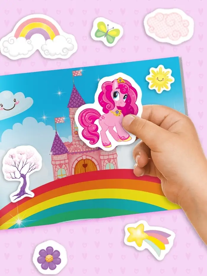 С альбомом интерактивных наклеек «Для девочек» познавать окружающий мир будет легко и интересно. Малышка подружится с весёлыми пони и другими волшебными существами.
