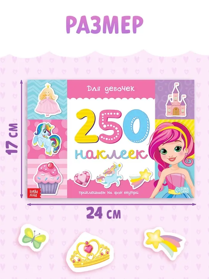 250 наклеек «Для девочек», 8 стр.