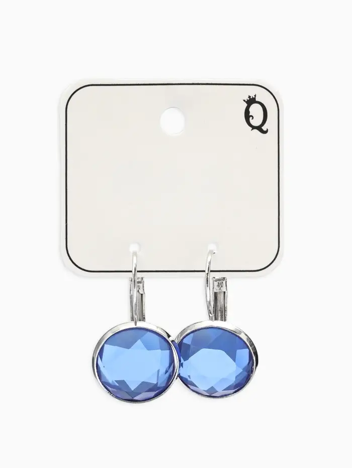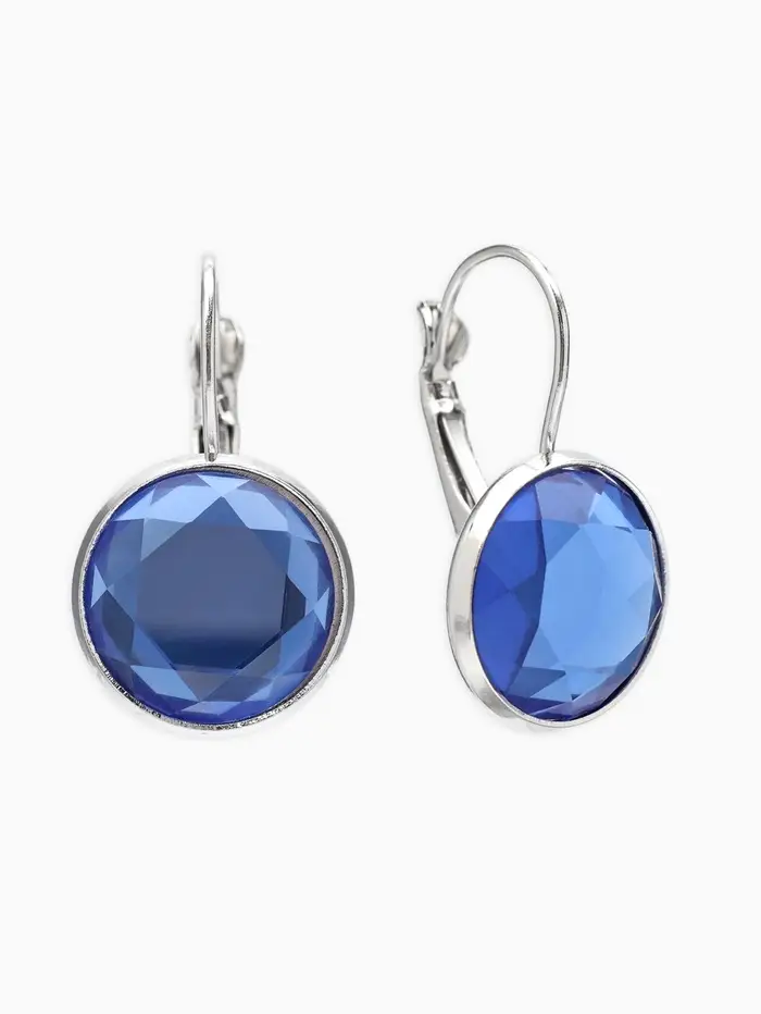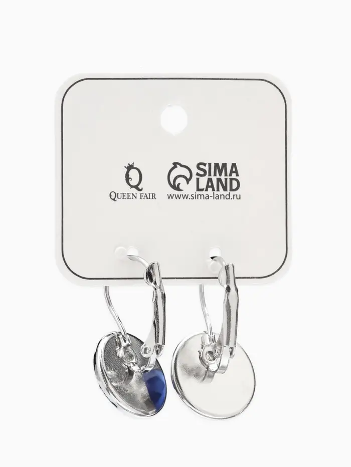 Серьги со стразами «Яркая классика», в обрамлении, тёмно-синие в серебре, d=1.6 см