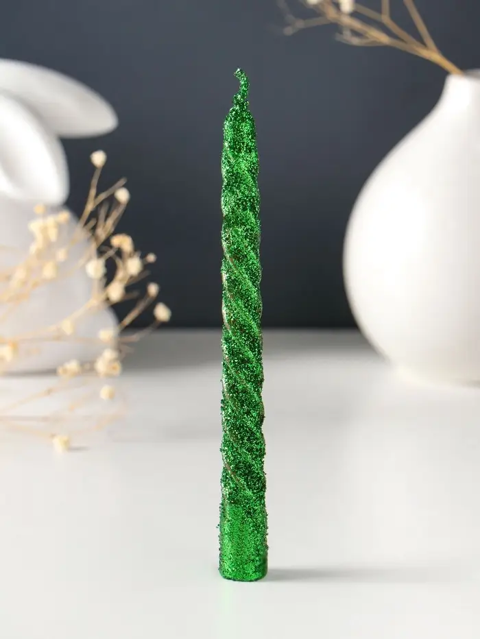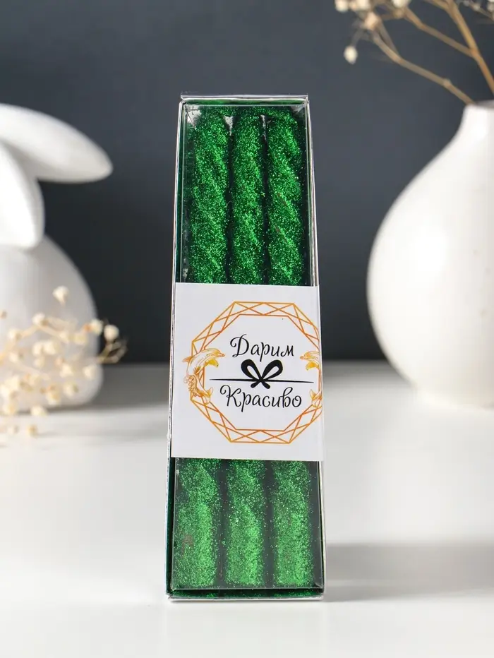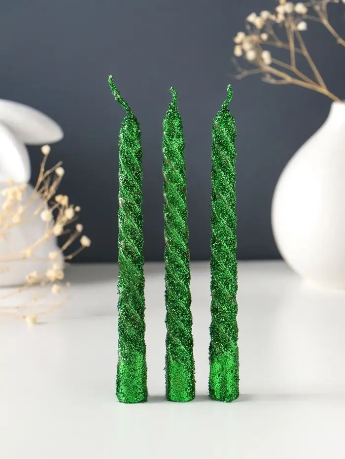 Набор свечей витых, 1.5×15 см, 3 шт., зелёный блистер