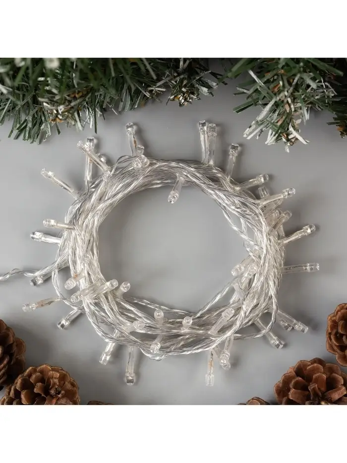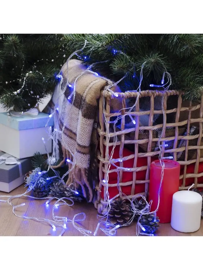 Гирлянда «Нить» 5 м, IP20, прозрачная нить, 50 LED, 8 режимов, 220 В, свечение синее