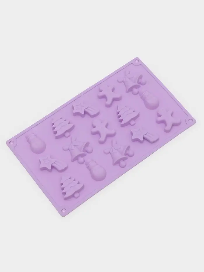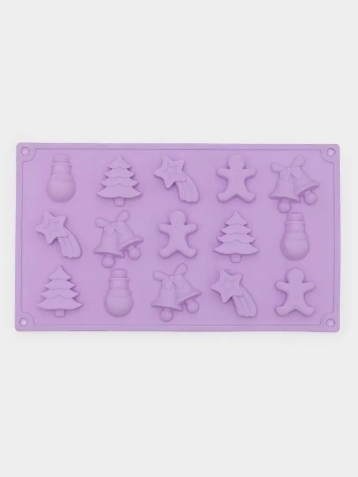 Силиконовая форма «Ёлочки» — праздничный и атмосферный выбор для тех, кто готовит сладости к Новому году. Её 15 ячеек формируют мини-ёлочки с чёткими ветвями, идеально подходящие для шоколада, марципана или желе. Нежный сиреневый оттенок силикона добавляет современное звучание классической новогодней тематике, а мягкая текстура материала обеспечивает аккуратное извлечение без повреждения деталей.