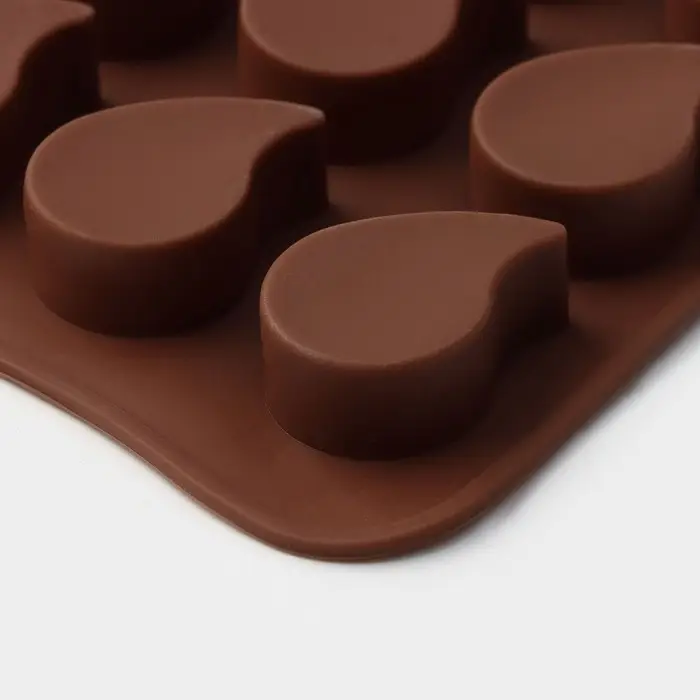 Форма для конфет и шоколада Доляна «Капелька», силикон, 21.5×10.4×1.3 см, 15 ячеек (2.3×3 см), коричневая