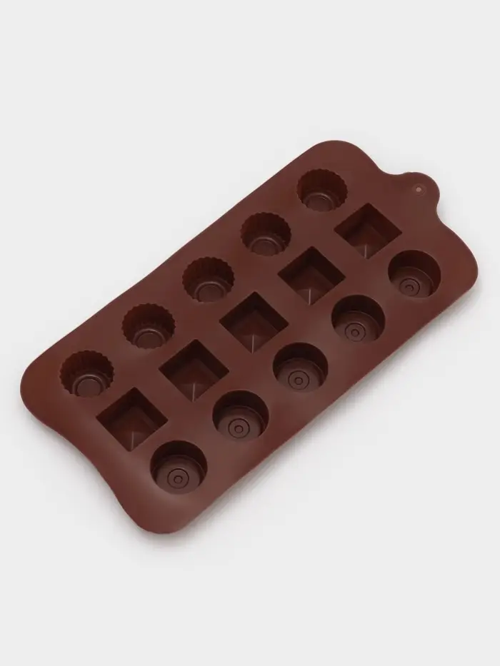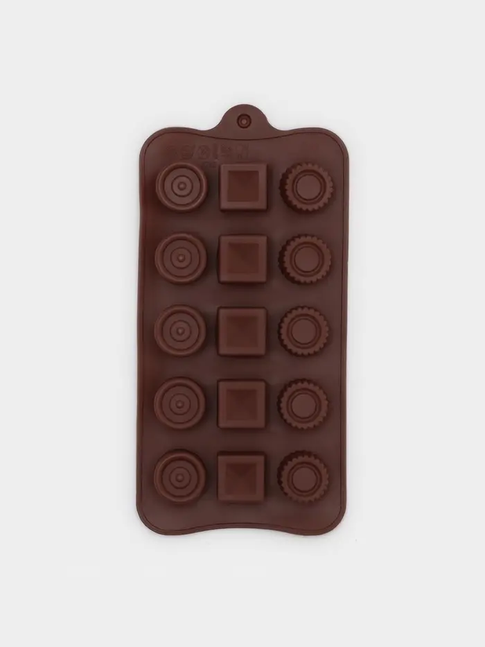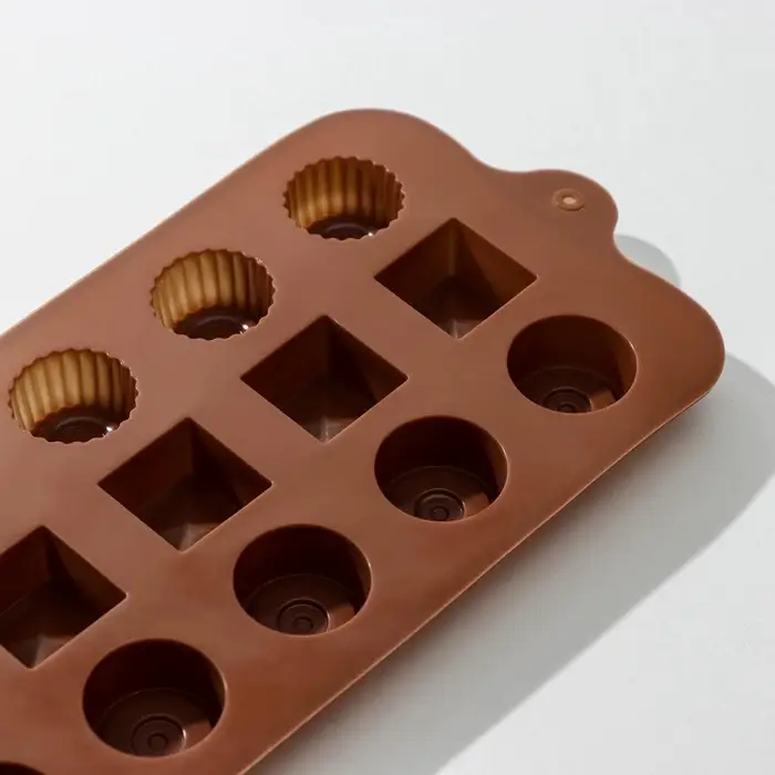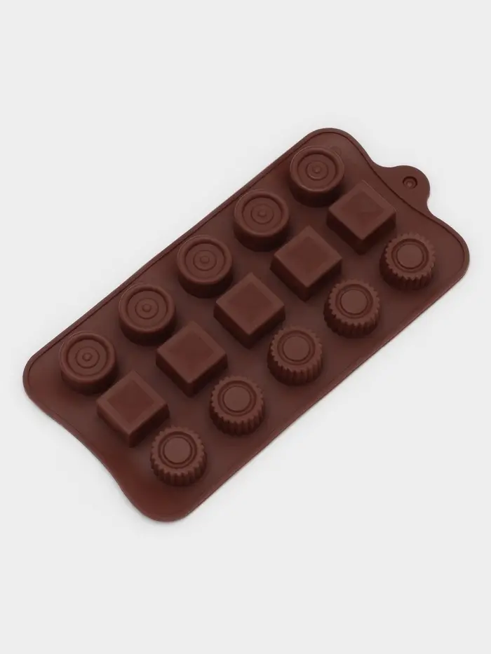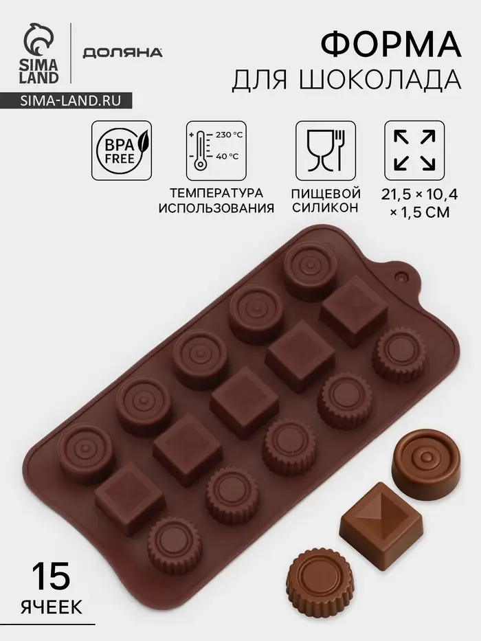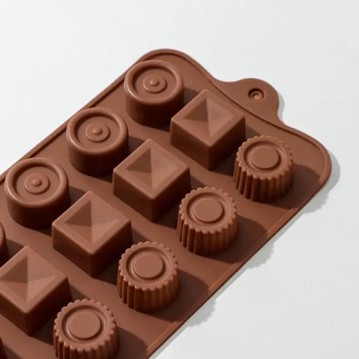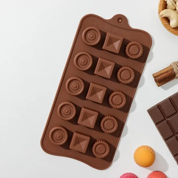 Форма для конфет и шоколада Доляна «Кружочки, квадратики», силикон, 21.5×10.4×1.5 см, 15 ячеек, коричневая
