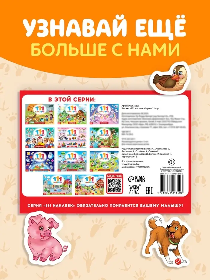С книгой «111 наклеек. Ферма» познавать окружающий мир ребёнку будет легко и интересно. Малыш узнает, какие животные обитают на ферме, и запомнит, как они выглядят и называются.