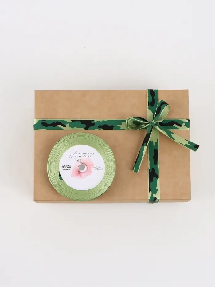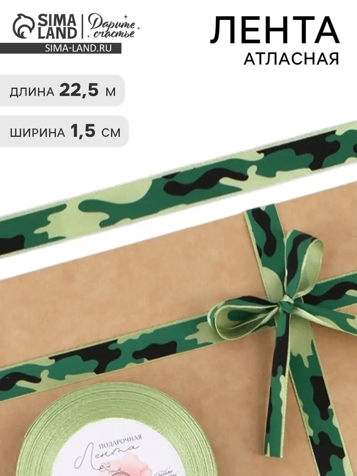 Лента атласная «Камуфляж», 1.5×22.5 (± 1) м, зелёная