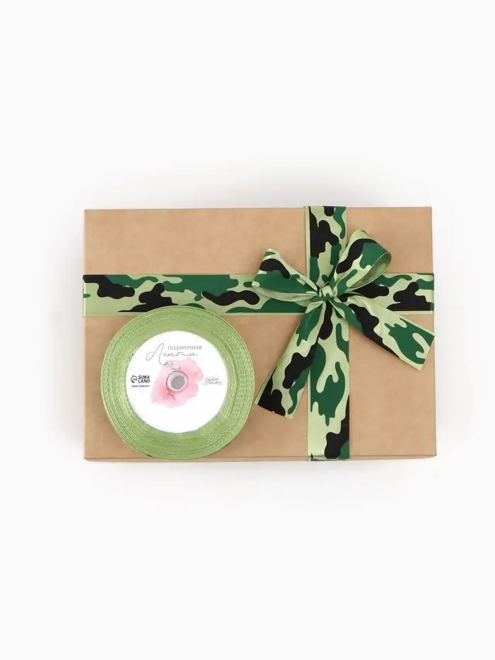 Лента атласная «Камуфляж», 25 мм × 23 ± 1 м, цвет зелёный