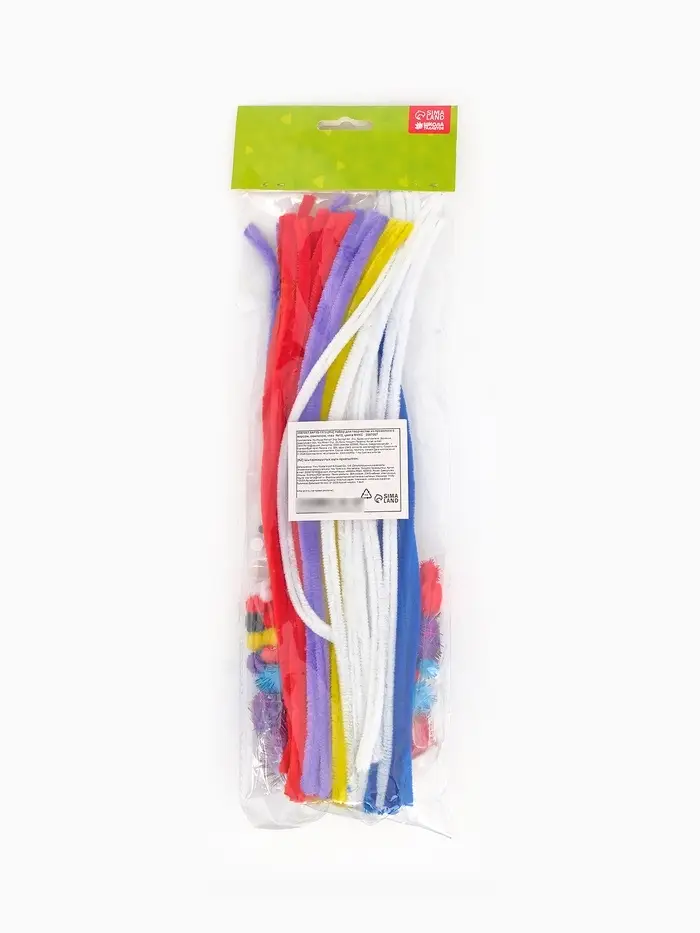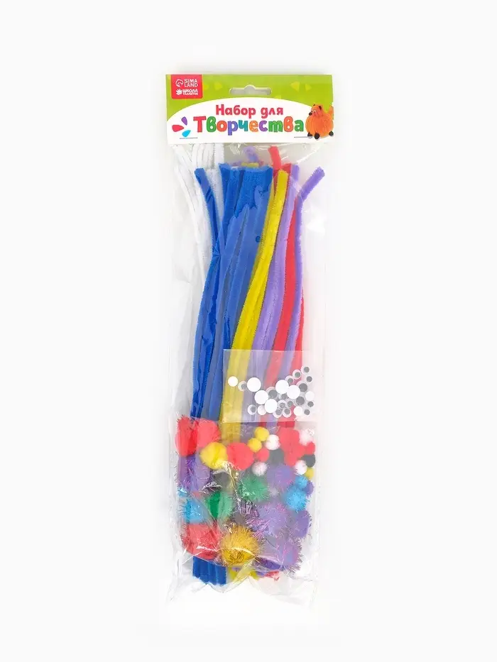 Набор для творчества поможет ребёнку создать пушистую поделку в виде причудливого зверька. Малышу остаётся только придумать, какое животное он будет делать.