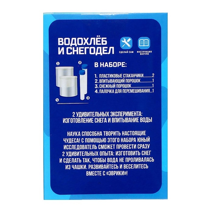 С набором торговой марки «Эврики» ребёнок самостоятельно изготовит снег и сумеет сделать так, чтобы вода не проливалась из чашки.