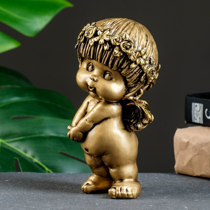 Фигура "Ангел стесняшка" золото 9х8х14см