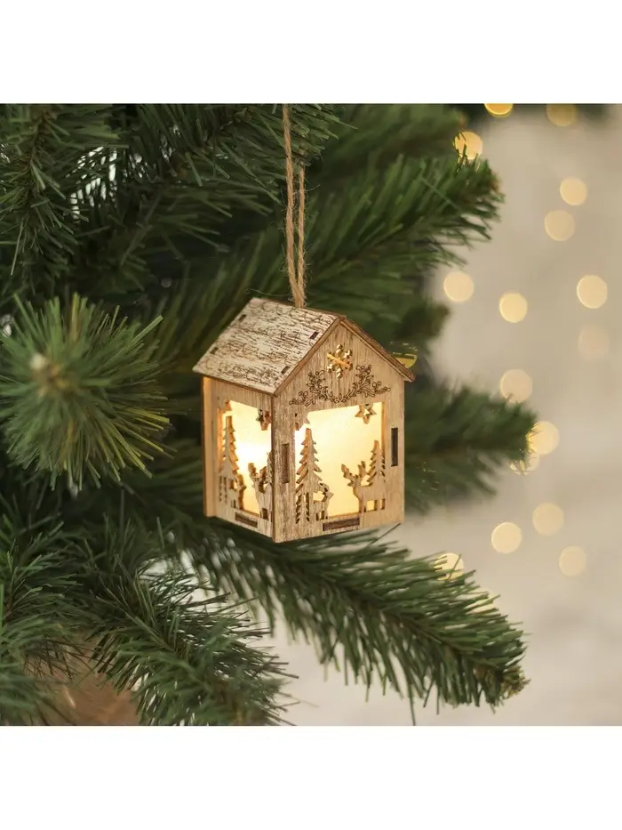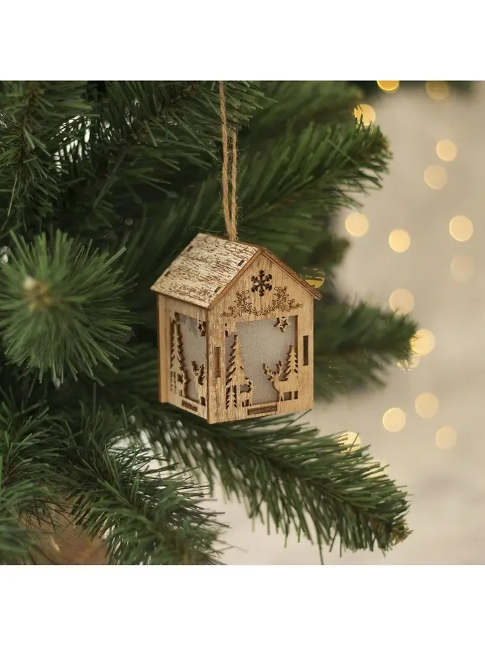 Ёлочная игрушка «Домик с оленем», 8×5×6 см, 1 LED, от батареек, свечение тёплое белое