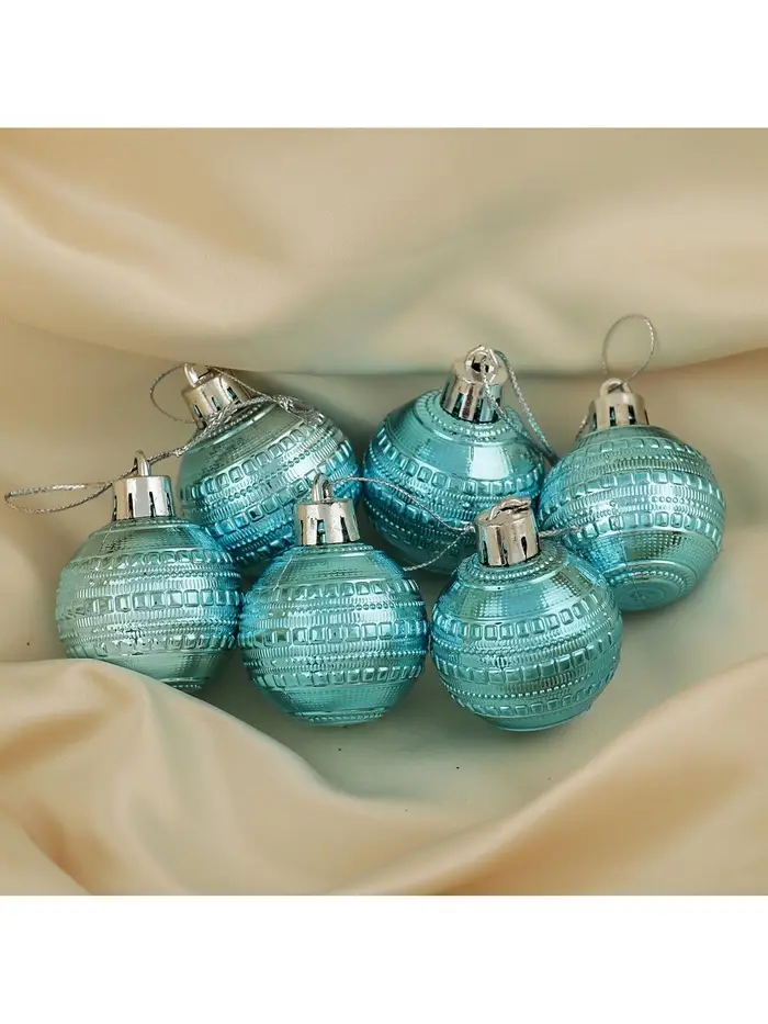 Бирюзовые шары в наборе помогают создать спокойный и уютный образ новогодней ёлки, сочетаясь с натуральными и пастельными оттенками. Их компактный размер подходит для украшения небольших ёлок и праздничных композиций, подчёркивая атмосферу скандинавской зимней свежести.