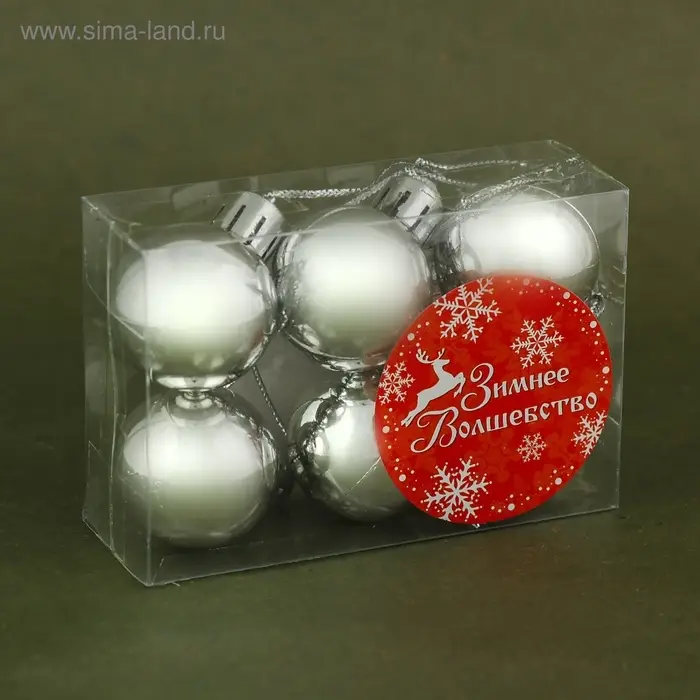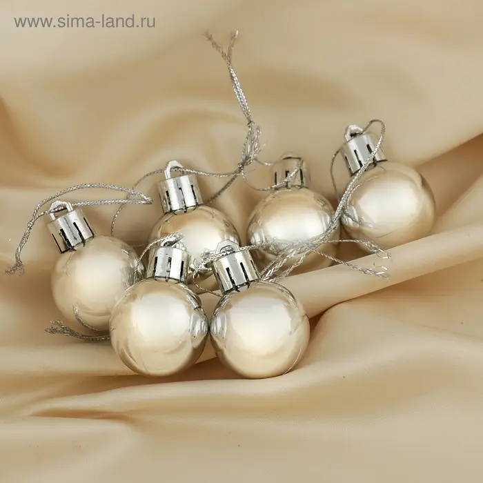 Ёлочные игрушки «Глянец», шары новогодние, d=3 см, набор 6 шт., серебро