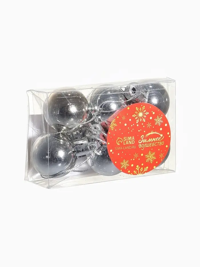 Сияние зимнего праздника в каждой детали. Новогодние шары «Глянец» — это 6 пластиковых украшений диаметром 3 см в серебристом цвете. Игрушки в форме мини-шаров подходят для создания датского, скандинавского или ар-деко стиля и добавляют ёлке лёгкого сияния без излишней вычурности. Это не просто набор игрушек — они формируют атмосферу спокойного торжества, где каждый элемент говорит о вкусе и внимании к деталям.