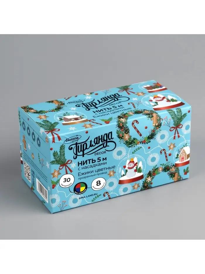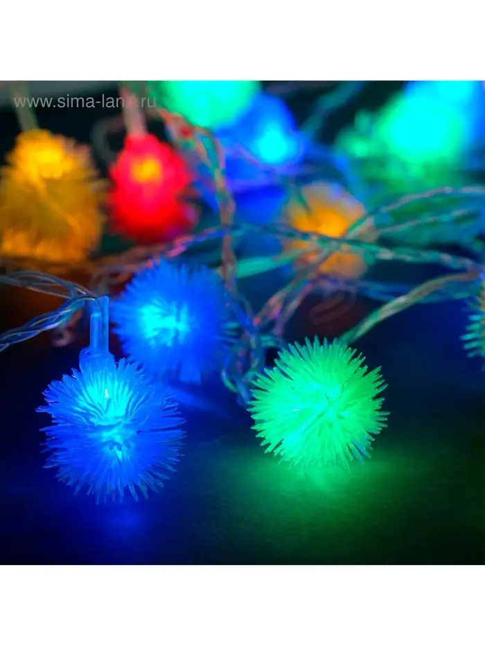 Гирлянда «Нить» 5 м с насадками «Ёжики цветные», IP20, прозрачная нить, 30 LED, свечение мульти, 8 режимов, 220 В
