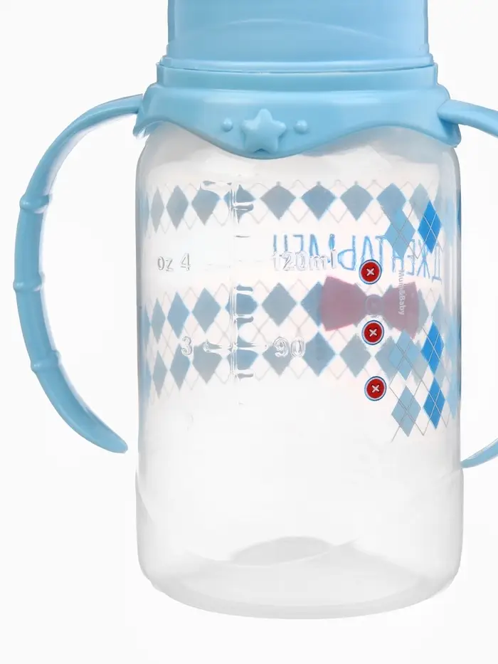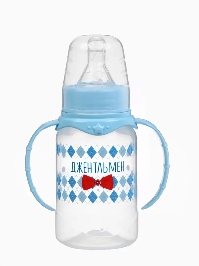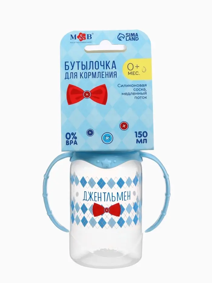 Бутылочка для кормления M&B «Маленький джентльмен» детская классическая, с ручками, 150 мл, от 0 мес., голубой