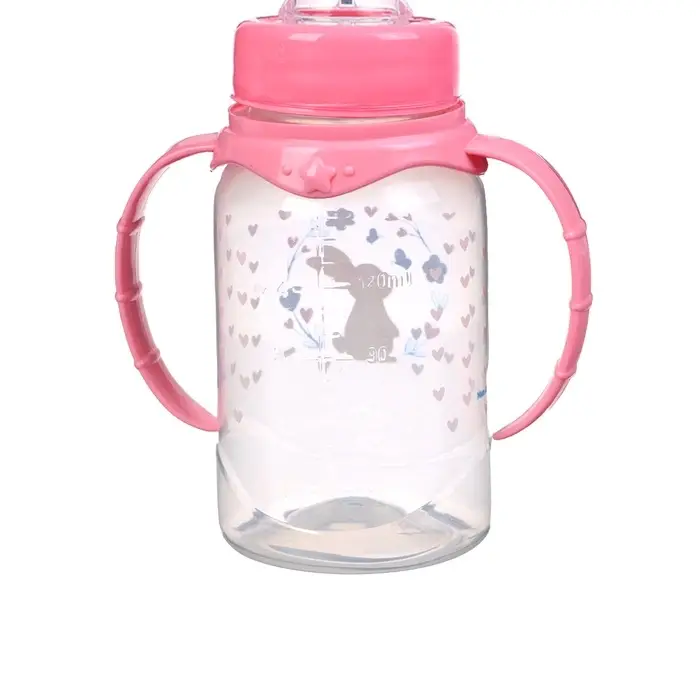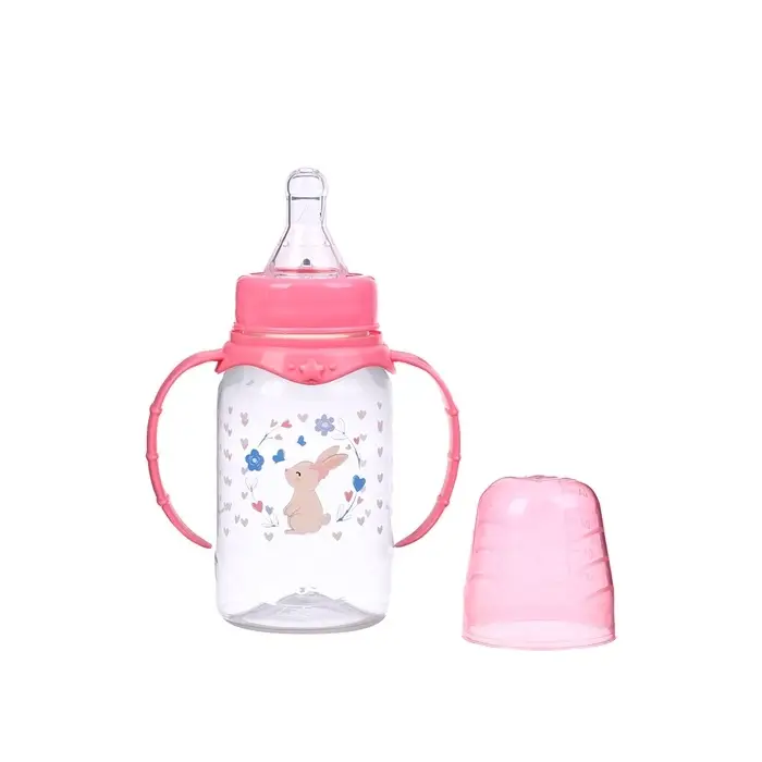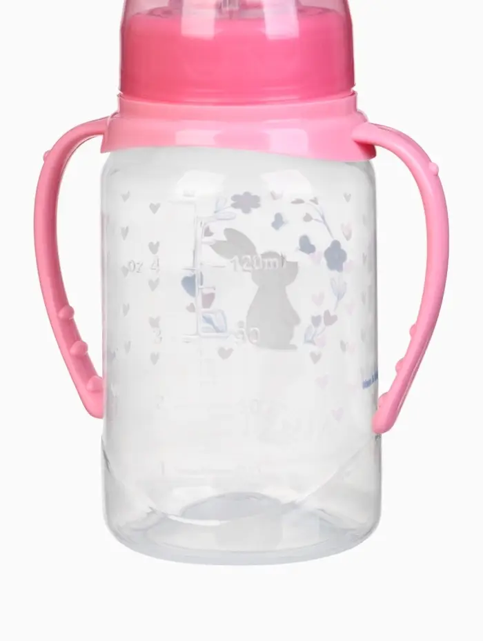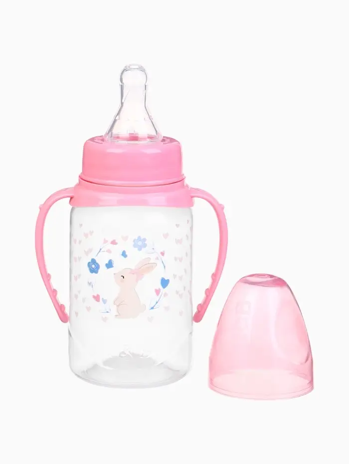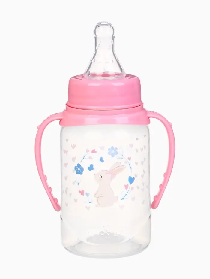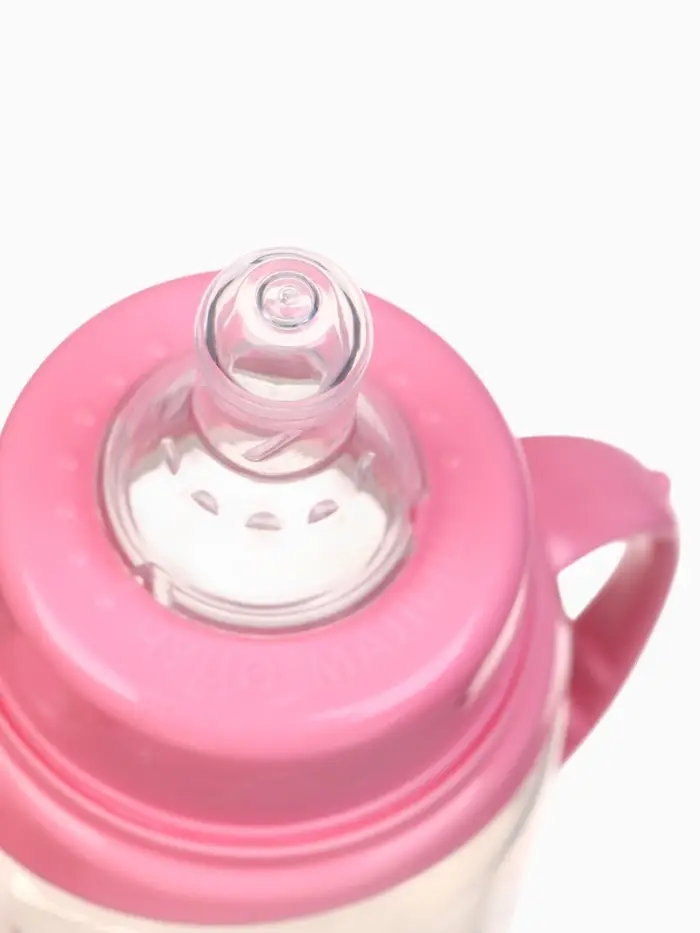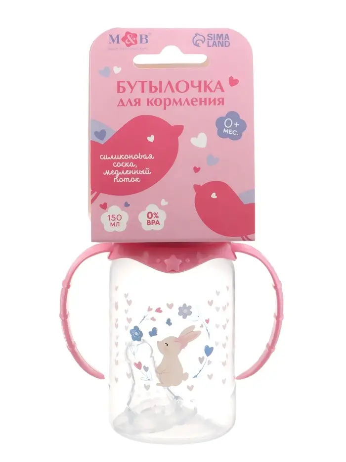 Бутылочка для кормления малыша M&B «Доченька», классическое горло, с ручками, от 0 мес., 150 мл., розовый