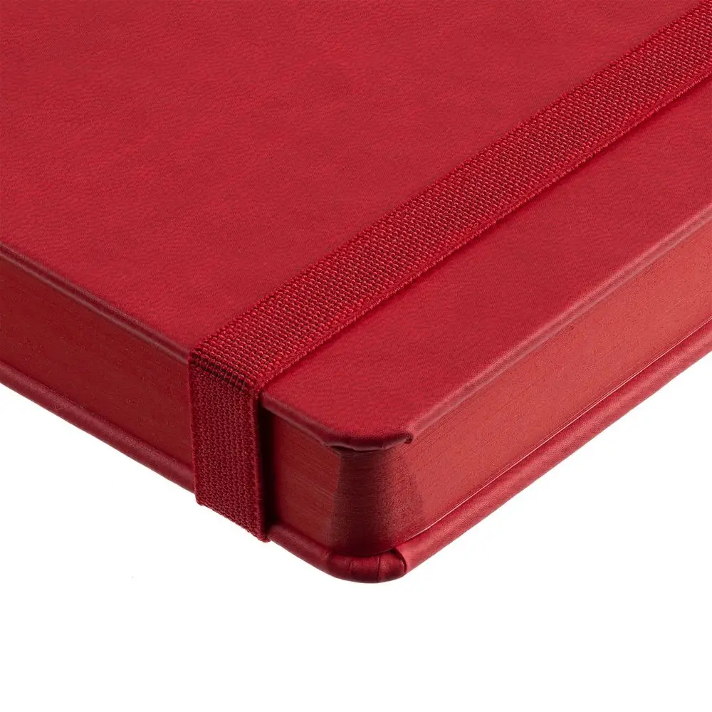 Ежедневник с твердой обложкой, выполнен из материала Latte, красный РР, обрез красного цвета, дополнен резинкой и ляссе красного цвета.
