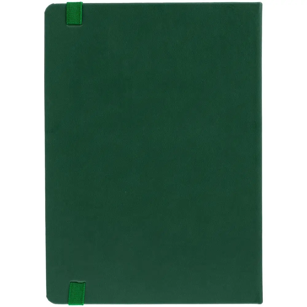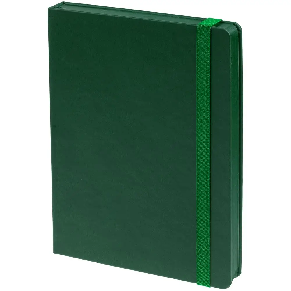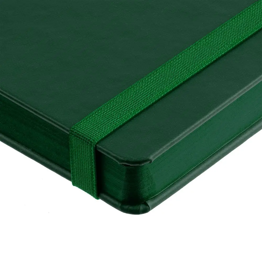 Ежедневник с твердой обложкой, выполнен из материала Latte, зеленый FF, обрез зеленого цвета, дополнен резинкой и ляссе зеленого цвета.