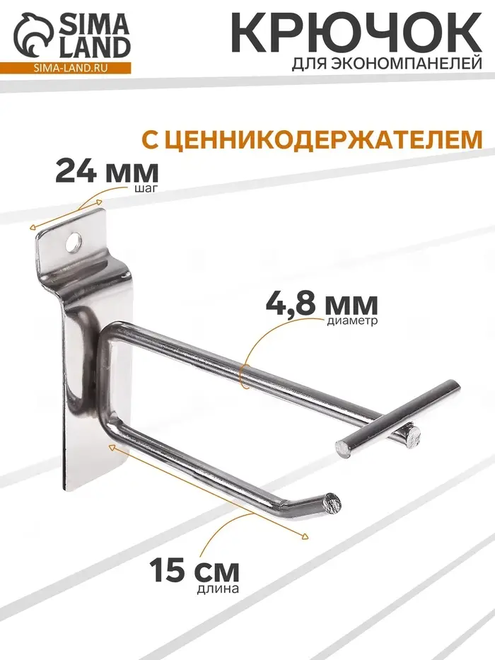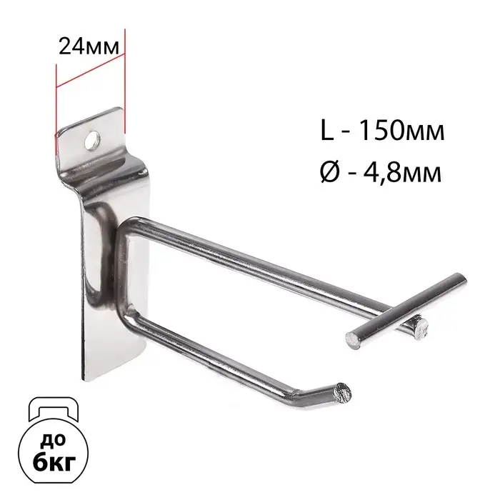 Металлический крючок с хромированным покрытием и держателем для ценника длиной 15 см предназначен для использования с экономпанелями. Толщина 4,8 мм обеспечивает прочность и надежность при нагрузке до 6 кг. Серебристый оттенок гальванического покрытия сохраняет презентабельный внешний вид и защищает от коррозии.
