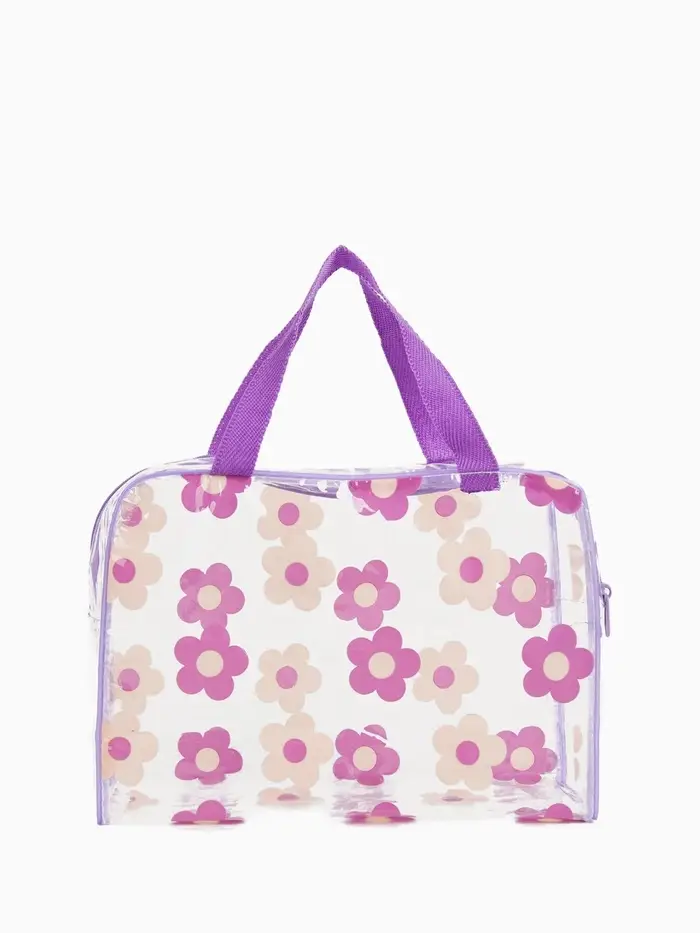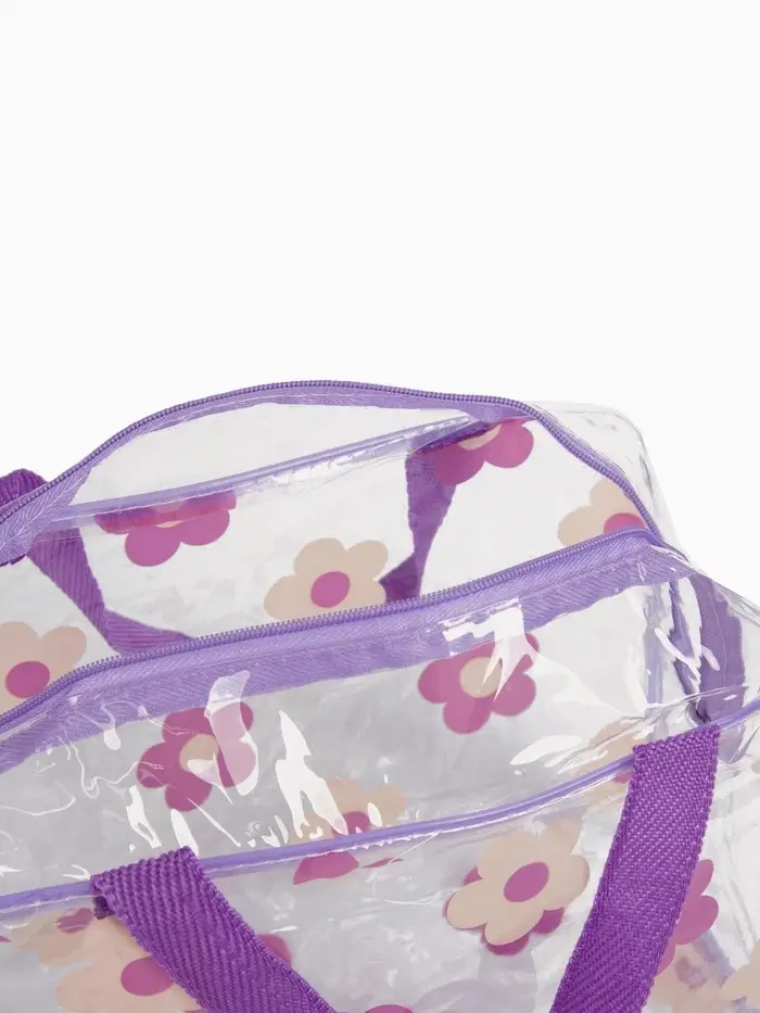 Эта прозрачная косметичка с цветочным принтом станет верной спутницей у бассейна, в спортзале или в путешествии. Вы всегда видите, что внутри, и легко находите нужную вещь. Прочный материал ПВХ надёжно защищает содержимое от брызг и влаги, а стильный фиолетовый оттенок с нежным рисунком добавляет образу лёгкости и женственности.