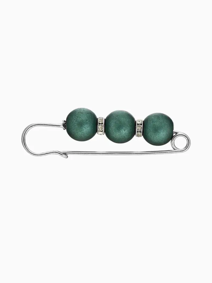 Булавка «Трио», 7 см, шар №14, матовый тёмно-зелёная в серебре