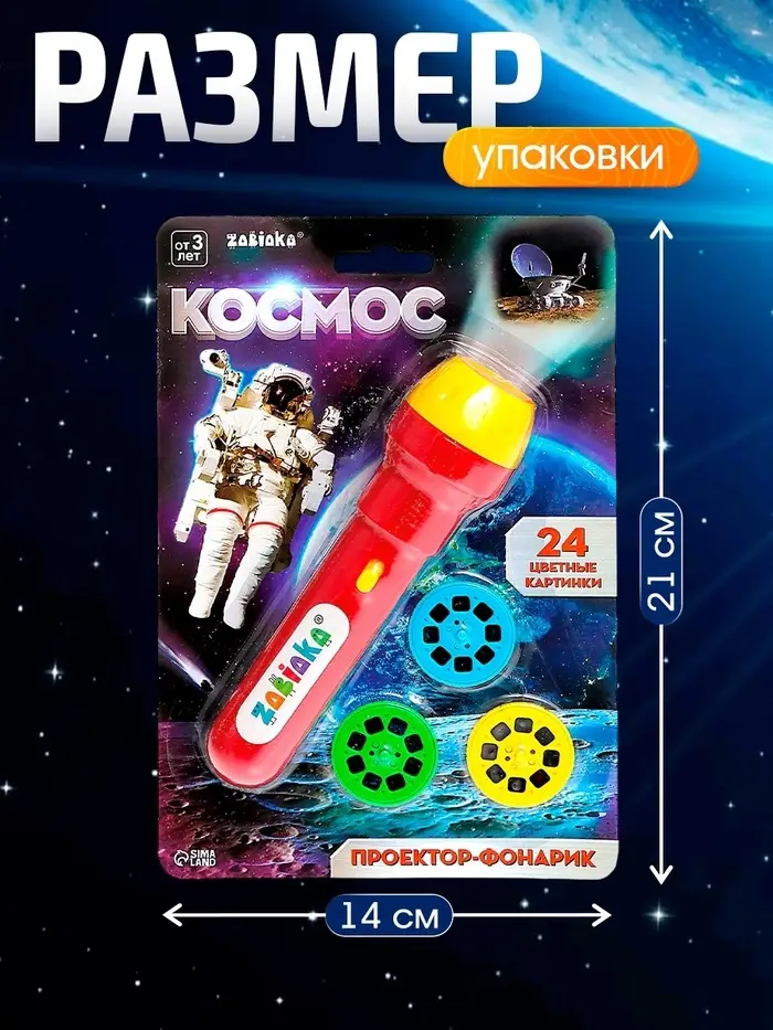Проектор-фонарик «Космос», 3 слайда, 24 картинки, МИКС